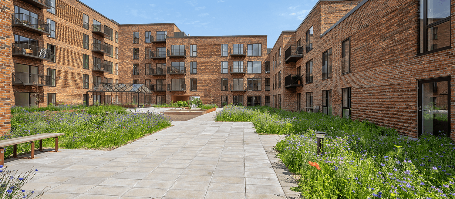 Bæredygtighed og biodiversitet er centrale elementer i Enghaven. De grønne gårdrum i midten af karrébebyggelserne er fulde af atmosfære med væksthuse og blomsterkasser, hvor der er plantet brombær, nordisk eng, salvie og timian. Gårdrummene inviterer til hyggelige stunder på tæpper og ved borde og bænke.