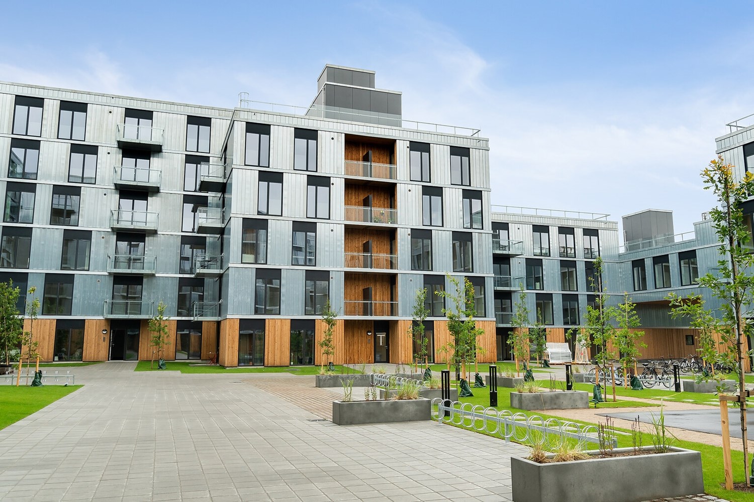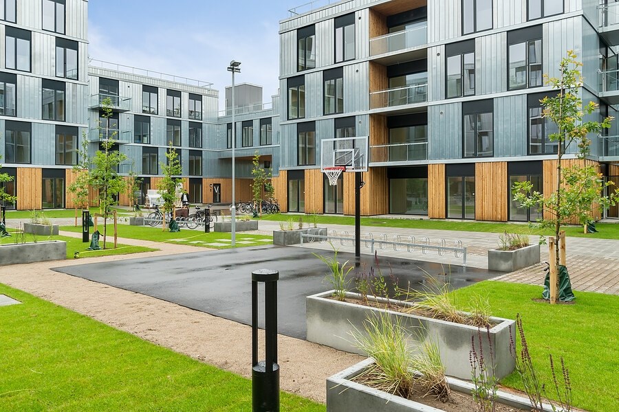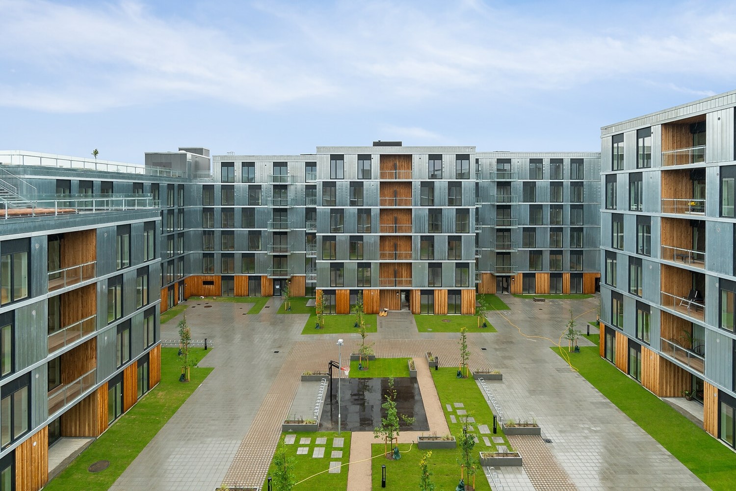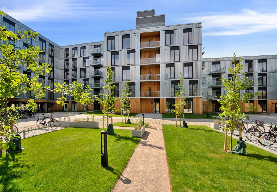 Boligerne fordeler sig omkring en indre gårdhave, som ikke alene skaber rekreative rammer for beboerne, men også skærmer mod støj fra den omkringliggende by. Gårdhaven indrammer derudover ankomsten til alle opgange, så spontane møder fremmes og stimulerer følelsen af karréen som et stort fællesskab.