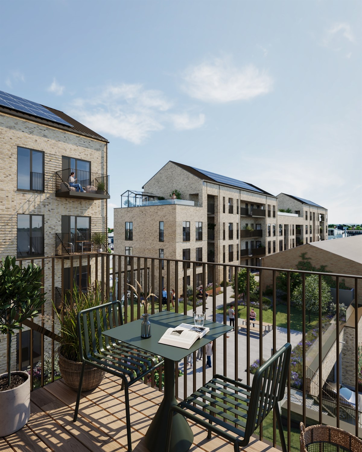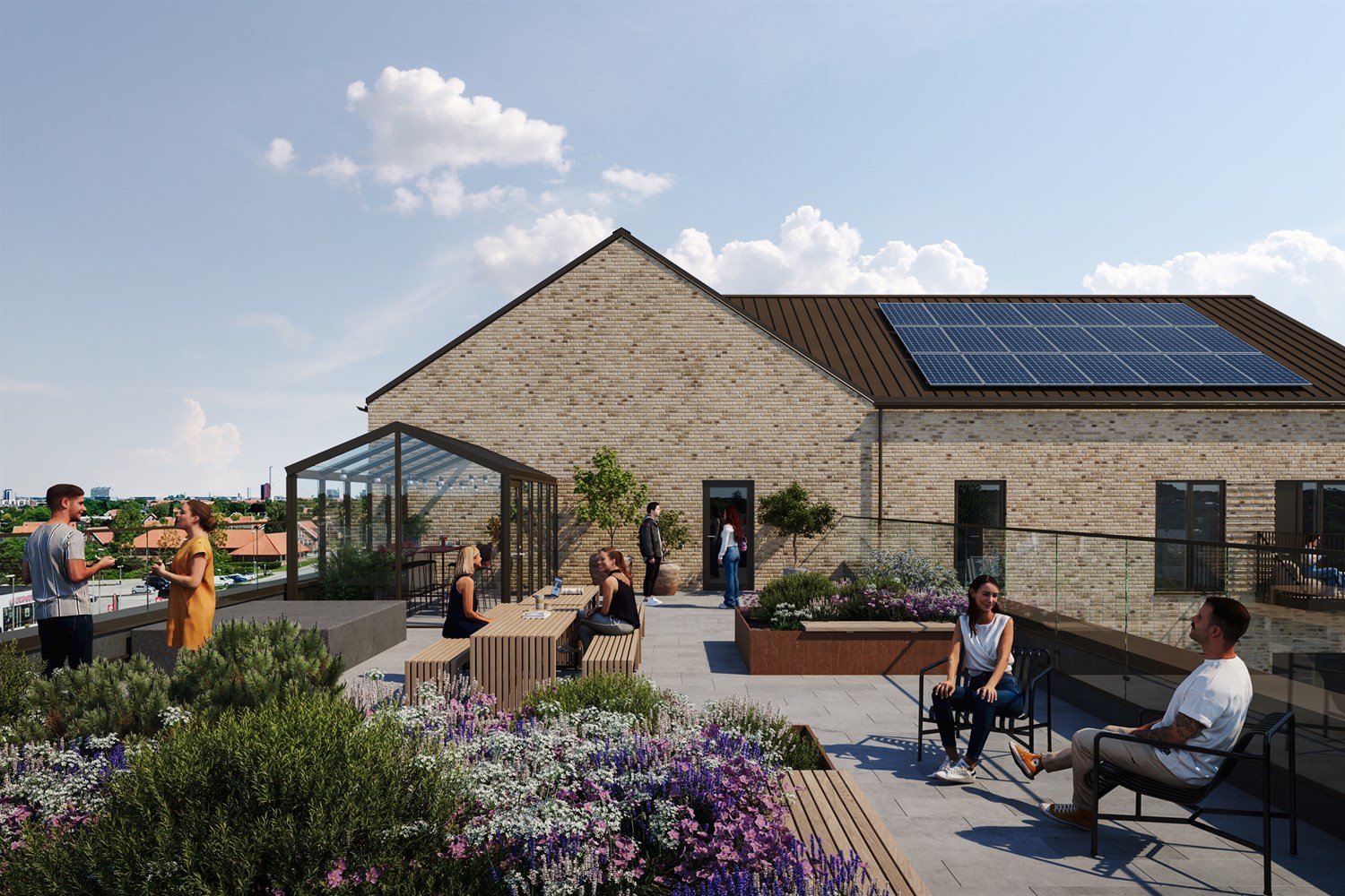 Den eksisterende og den nye ejendom er forbundet af en grøn have og med adgang til flere fælles tagterrasser med orangeri og træningsfaciliteter. På en urban beliggenhed har ambitionen været at skabe mere luft og bynatur i attraktive fællesarealer.